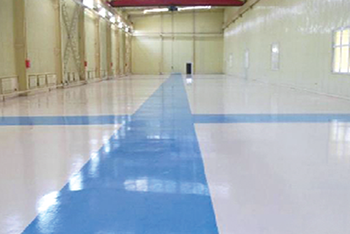 6、涂刷罩面清漆:本工序可根據用戶需要選擇使用;溶劑型環氧面漆施工完畢12~24小時后,即固化至行人不留印跡后,用環氧耐磨層面漆滾涂一遍,可大大提高地坪光潔度和耐用性